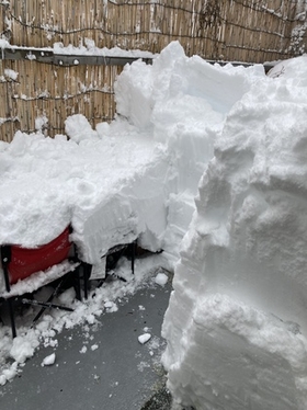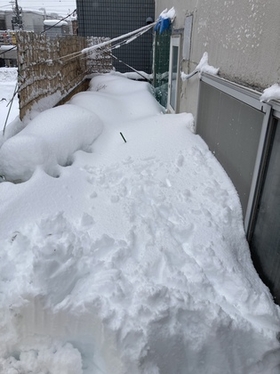 無事、ベランダのドアは開閉でき、これで部屋の換気もスムーズになるし、買ってきたジュースなど雪の中に突っ込んで凍らない自然の冷蔵庫も使用できる状態まで復活です。