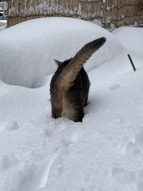 その前に、屁っ放り腰のジョユウ(クウ)をベランダの雪上に出してあげるとおっかなびっくりで、見ているこっちが笑ってしまう。